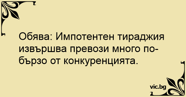 Обява: Импотентен тираджия извършва превози много по-бързо от конкуренцията.