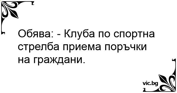 Обява: - Клуба по спортна стрелба приема поръчки на граждани.