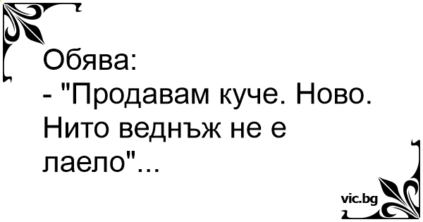- "Продавам куче. Ново. Нито веднъж не е лаело"...