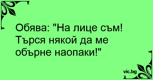 Обява: "На лице съм! Търся някой да ме обърне наопаки!"
