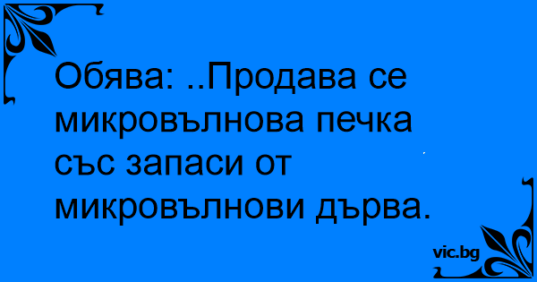 Обява: ..Продава се микровълнова печка със запаси от микровълнови дърва.