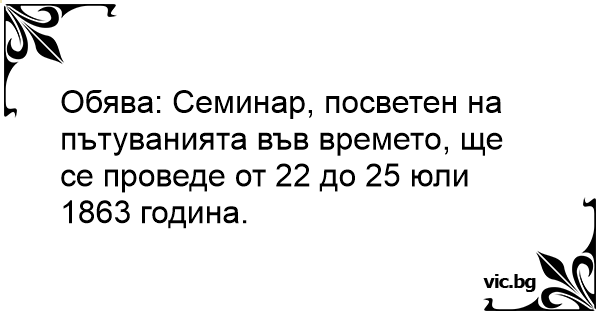 Обява: Семинар, посветен на пътуванията във времето, ще се проведе от 22 до 25 юли 1863 година.