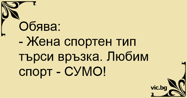 - Жена спортен тип търси връзка. Любим спорт - СУМО!