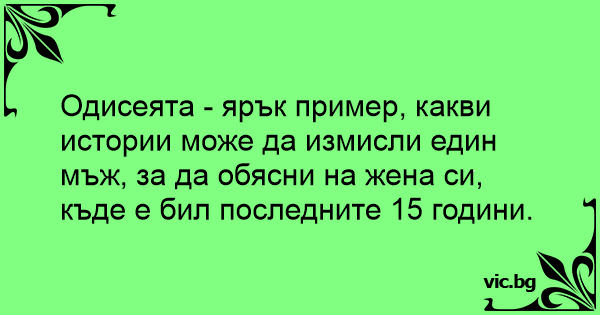 Одисеята - ярък пример, какви истории може да измисли един мъж, за да обясни на жена си, къде е бил последните 15 години.