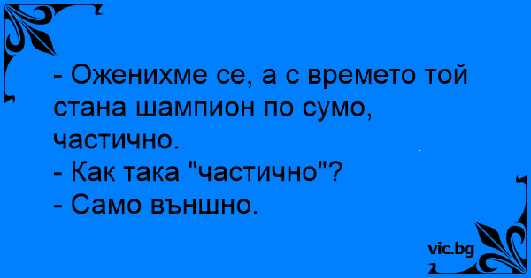 - Оженихме се, а с времето той стана шампион по сумо, частично.