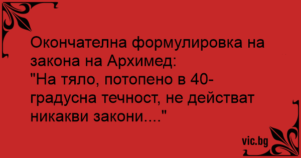 "На тяло, потопено в 40-градусна течност, не действат никакви закони...."