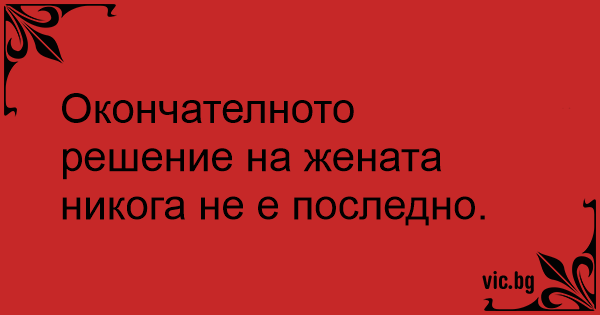 Окончателното решение на жената никога не е последно.