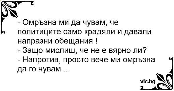 - Омръзна ми да чувам, че политиците само крадяли и давали напразни обещания !