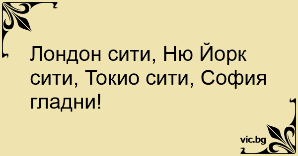 Лондон сити, Ню Йорк сити, Токио сити, София гладни!