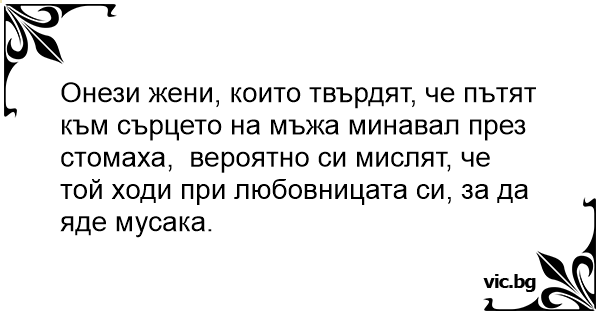 Онези жени, които твърдят, че пътят към сърцето на мъжа минавал през стомаха, вероятно си мислят, че той ходи при любовницата си, за да яде мусака.