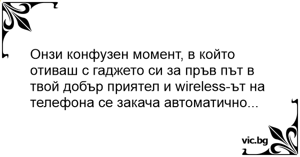 Онзи конфузен момент, в който отиваш с гаджето си за пръв път в твой добър приятел и wireless-ът на телефона се закача автоматично...