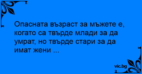 Опасната възраст за мъжете е, когато са твърде млади за да умрат, но твърде стари за да имат жени ...