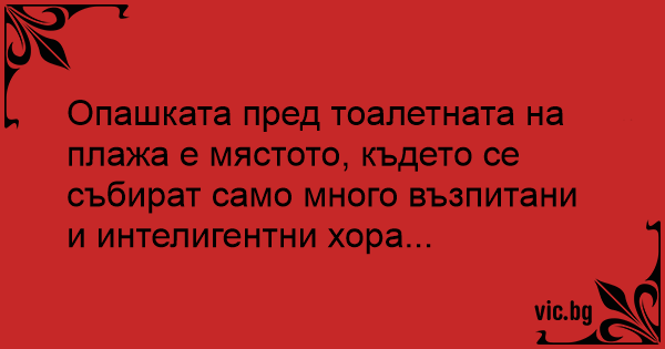 Опашката пред тоалетната на плажа е мястото, където се събират само много възпитани и интелигентни хора...