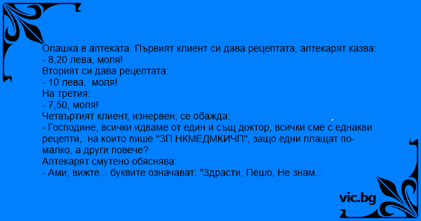 Вицове за аптекари, Вицове за аптека, Вицове за фармацевти