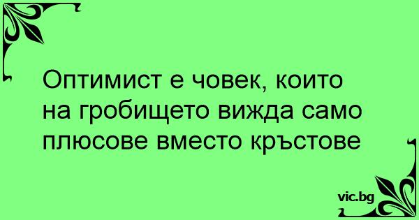 Оптимист е човек, които на гробището вижда само плюсове вместо кръстове
