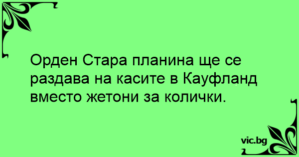Орден Стара планина ще се раздава на касите в Кауфланд вместо жетони за колички.
