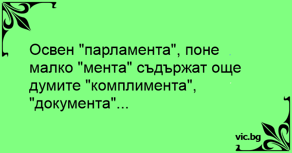 Освен "парламента", поне малко "мента" съдържат още думите "комплимента", "документа"...