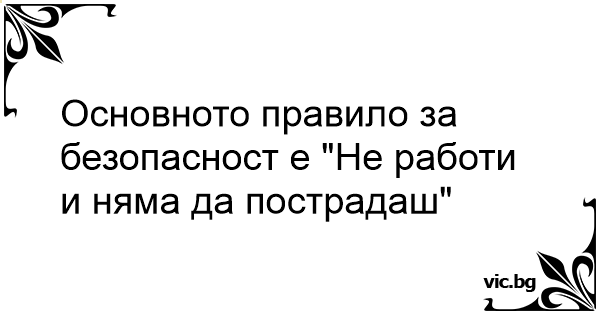 Основното правило за безопасност е "Не работи и няма да пострадаш"