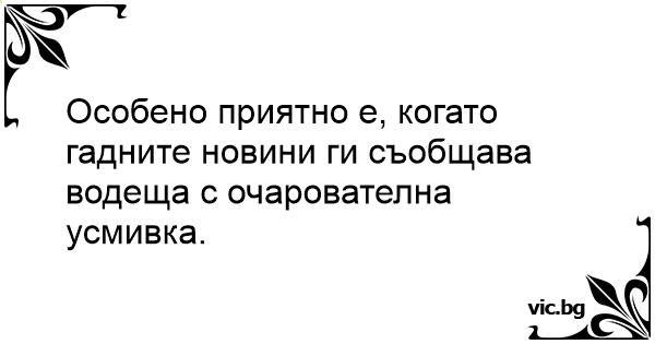 Особено приятно е, когато гадните новини ги съобщава водеща с очарователна усмивка.