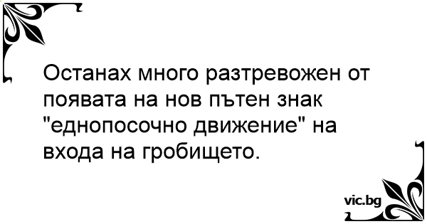 Останах много разтревожен от появата на нов пътен знак "еднопосочно движение" на входа на гробището.