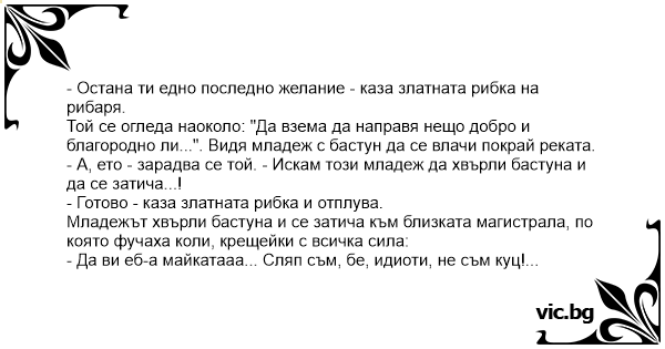 - Остана ти едно последно желание - каза златната рибка на рибаря.