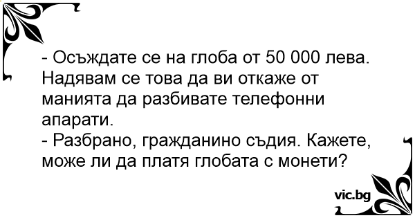 - Осъждате се на глоба от 50 000 лева. Надявам се това да ви откаже от манията да разбивате телефонни апарати.