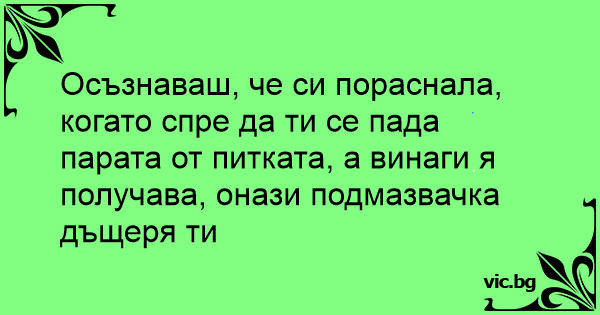 Осъзнаваш, че си пораснала, когато спре да ти се пада парата от питката, а винаги я получава, онази подмазвачка дъщеря ти