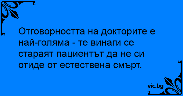 Отговорността на докторите е най-голяма - те винаги се стараят пациентът да не си отиде от естествена смърт.