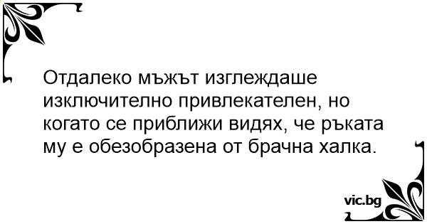 Отдалеко мъжът изглеждаше изключително привлекателен, но когато се приближи видях, че ръката му е обезобразена от брачна халка.