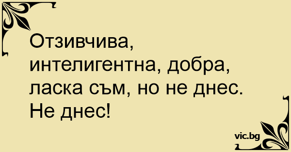 Отзивчива, интелигентна, добра, ласка съм, но не днес.