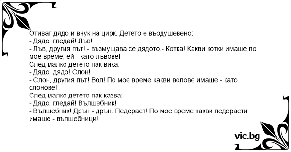 Отиват дядо и внук на цирк. Детето е въодушевено: