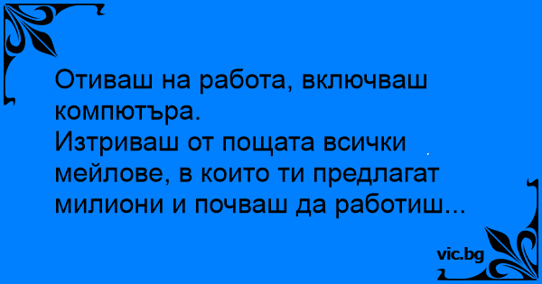 Изтриваш от пощата всички мейлове, в които ти предлагат милиони и почваш да работиш...