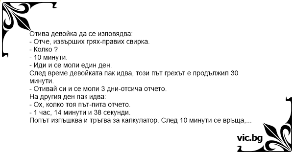 След време девойката пак идва, този път грехът е продължил 30 минути.