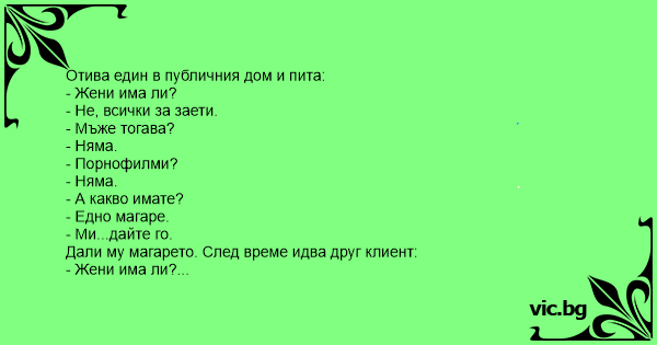 • Вицове от Facebook от нашата страница https://www.facebook.com/www.vic.bg
