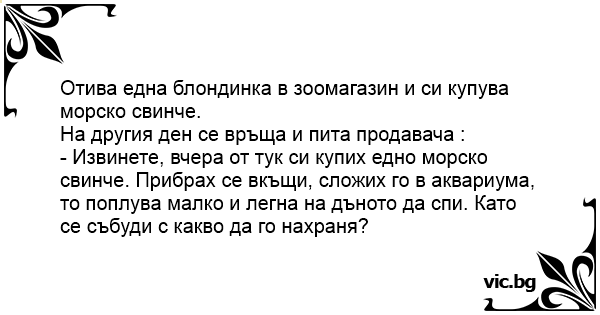 Отива една блондинка в зоомагазин и си купува морско свинче.