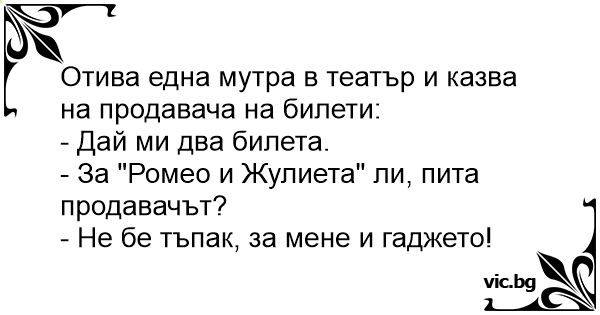 - За "Ромео и Жулиета" ли, пита продавачът?