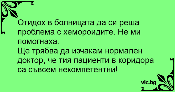 Отидох в болницата да си реша проблема с хемороидите. Не ми помогнаха.