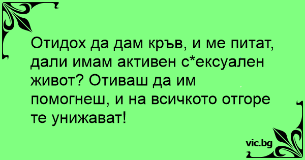Отидох да дам кръв, и ме питат, дали имам активен cekcуaлeн живот? Отиваш да им помогнеш, и на всичкото отгоре те унижават!