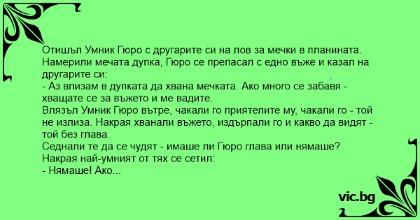 - Нямаше! Ако имаше глава, изобщо нямаше да влиза в дупката при мечката.