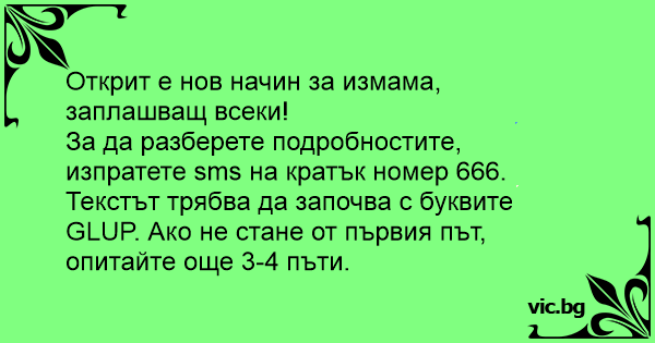 За да разберете подробностите, изпратете sms на кратък номер 666. Текстът трябва да започва с буквите GLUP. Ако не стане от първия път, опитайте още 3-4 пъти.