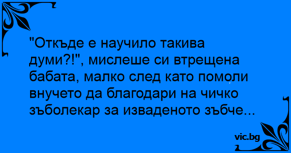 "Откъде е научило такива думи?!", мислеше си втрещена бабата, малко след като помоли внучето да благодари на чичко зъболекар за изваденото зъбче...