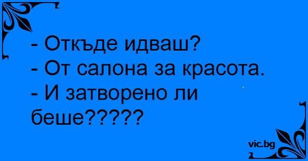 Hazaérve mondja az asszony a férjének: - Most jövök a szépségszalonból. - Zárva volt?