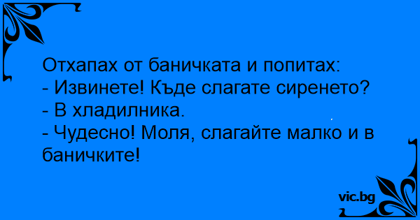 • Вицове от Facebook от нашата страница https://www.facebook.com/www.vic.bg