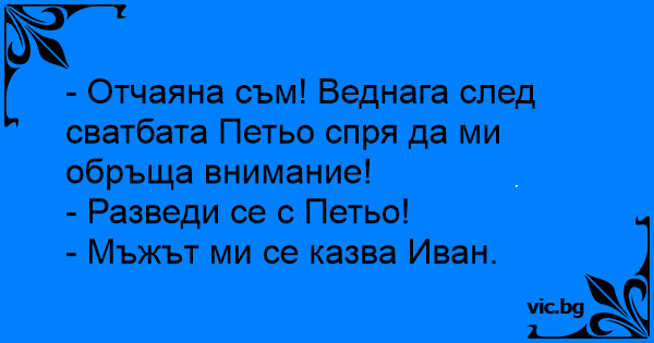 • Вицове от Facebook от нашата страница https://www.facebook.com/www.vic.bg