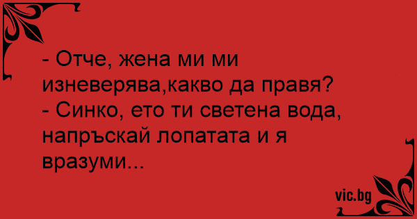 - Синко, ето ти светена вода, напръскай лопатата и я вразуми...
