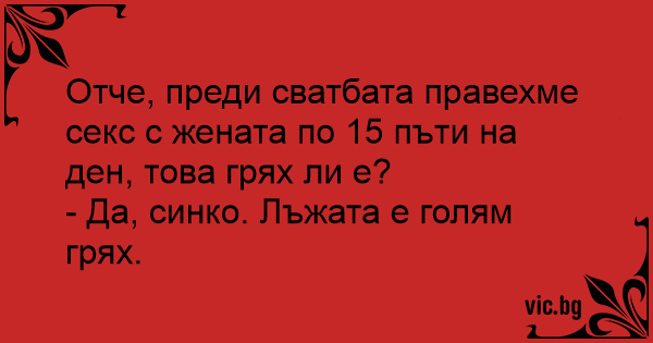 Отче, преди сватбата правехме cekc с жената по 15 пъти на ден, това грях ли е?