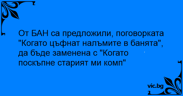 От БАН са предложили, поговорката "Когато цъфнат налъмите в банята", да бъде заменена с "Когато поскъпне старият ми комп"