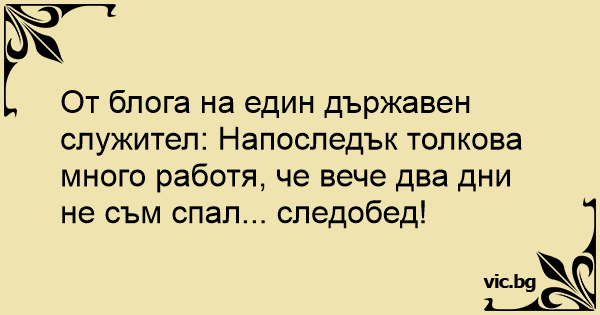 От блога на един държавен служител: Напоследък толкова много работя, че вече два дни не съм спал... следобед!