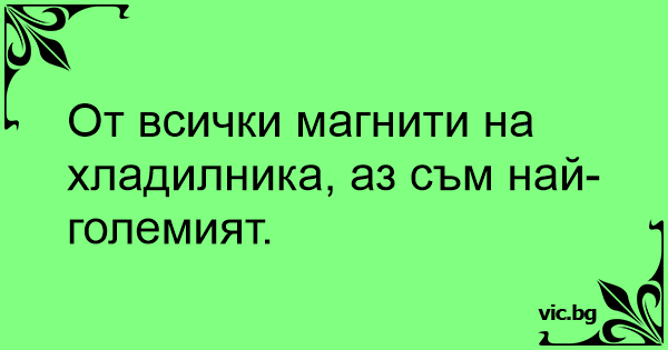 От всички магнити на хладилника, аз съм най-големият.