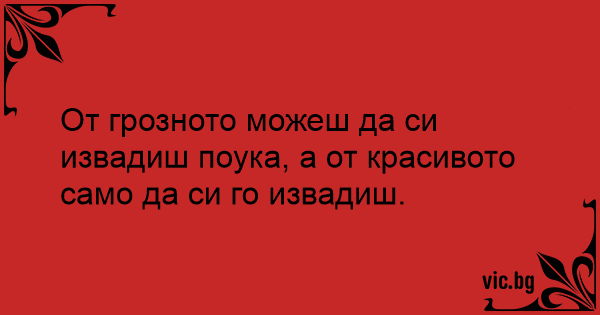 От грозното можеш да си извадиш поука, а от красивото само да си го извадиш.